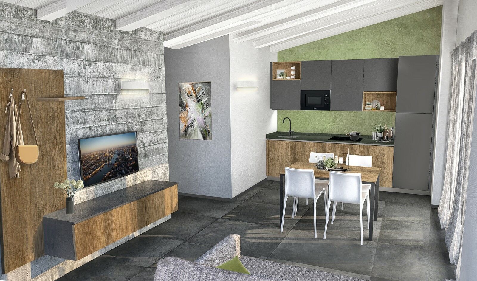 - Angolo cottura completamente arredato, pentole e stoviglie.