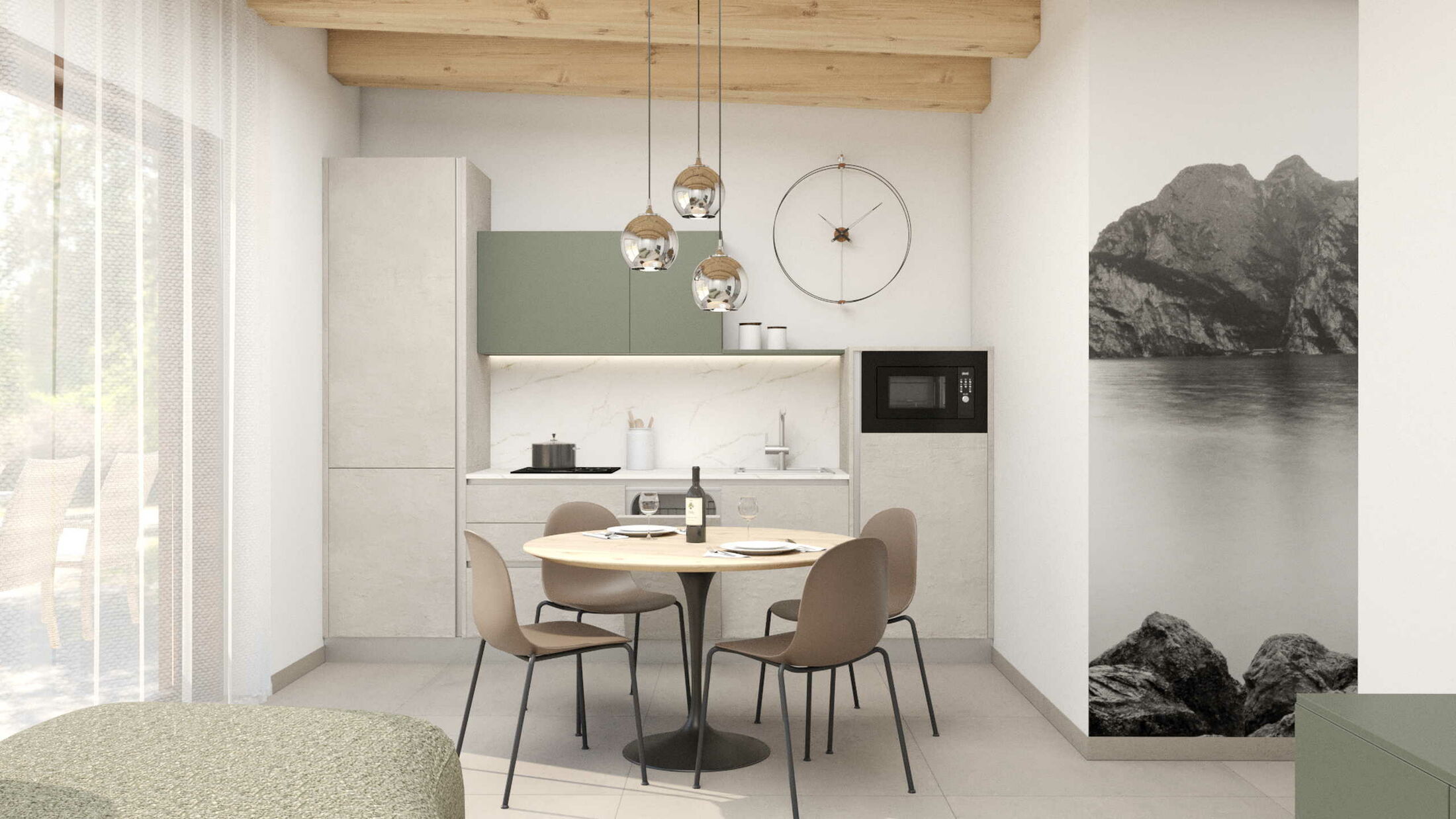 - Forno a microonde, lavastoviglie e piastre a induzione.